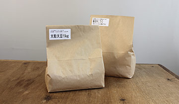 北海道産大粒大豆です。お味噌造りだけではなく、煮豆などお料理に使っても美味しいですよ。