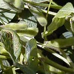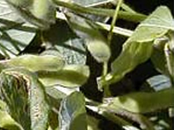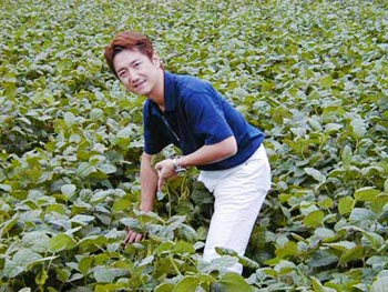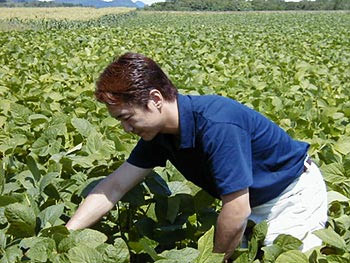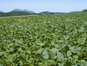 これが日本の最高級大豆、鶴の子大豆の畑です。ただ「粒が大きい」というだけで鶴の子大豆として売られている偽物もあるくらい人気の大豆です。食べてみると、その甘味や香りが他の大豆とは全然違います。